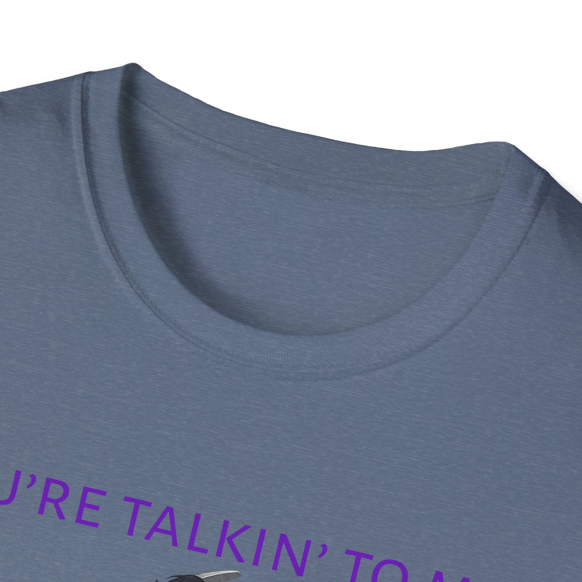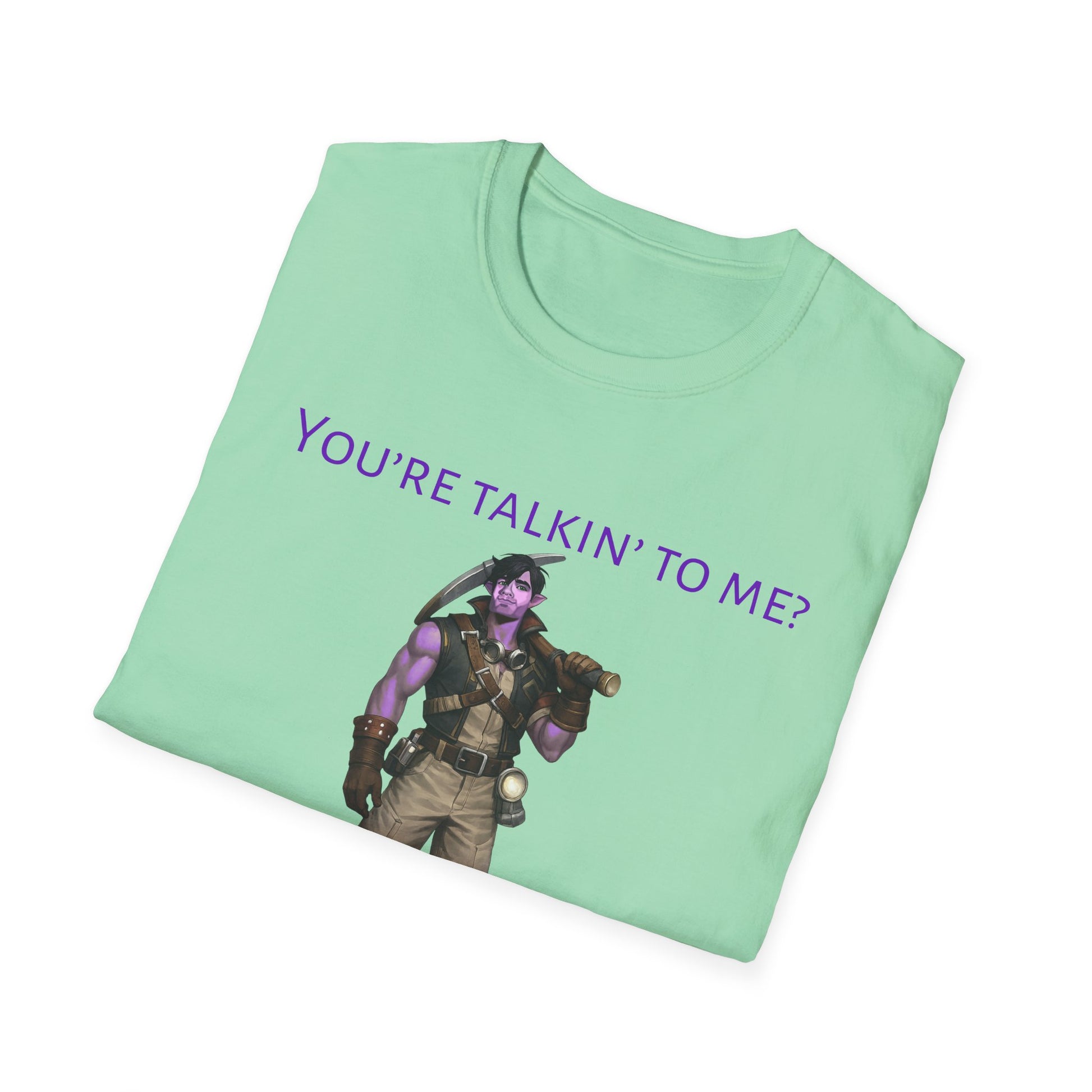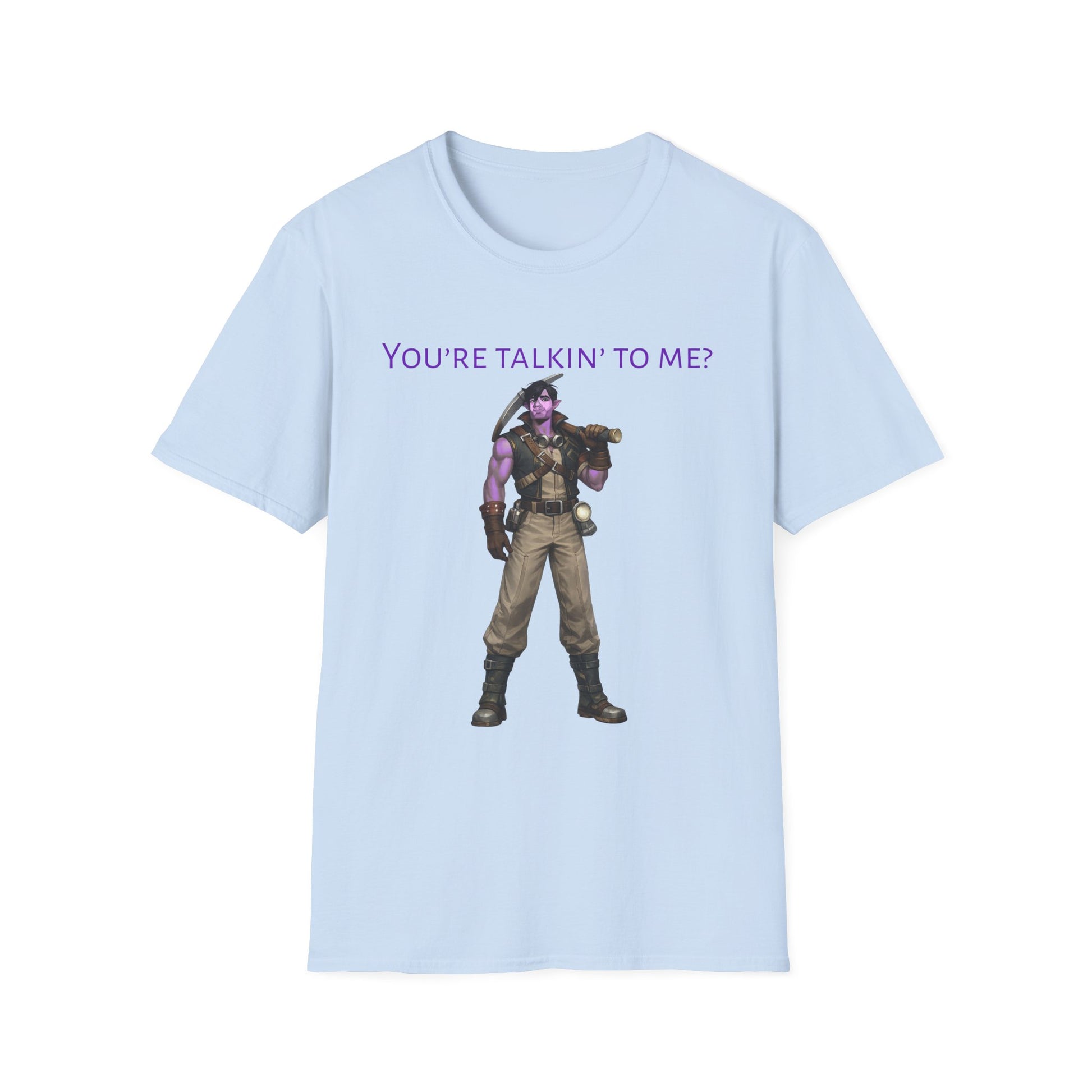 stands centered on the chest, with the line “YOU’RE TALKIN’ TO ME?” above — a playful, slightly defiant riff that slips easily into everyday wear. The soft, breathable fabric drapes casually yet holds shape thanks to a ribbed crew neckline and shoulder tape. Wear it to gaming nights, conventions, or city hangs when you want to show a bit of swagger without shouting. It layers under a jacket or pairs with jeans for an easy, lived-in look that becomes more personal with every wash.