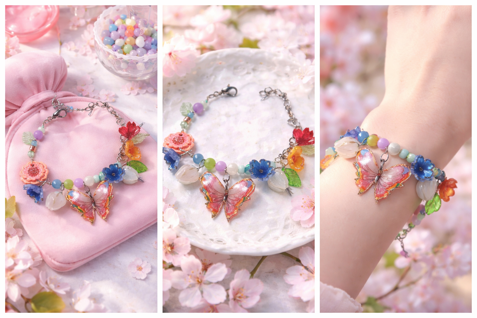 Inspired by the Rainbow-Tipped Butterfly from Palia, this handmade charm bracelet captures soft spring colors, floral details, and whimsical fantasy vibes. A magical statement piece for dreamers, cozy gamers, and lovers of cottagecore beauty. Crafted with heart by WitchSoul.