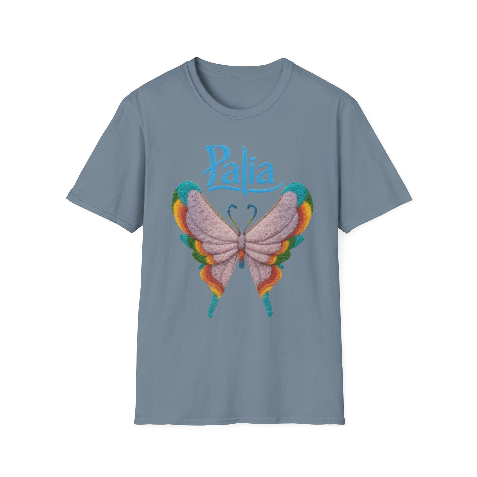 Palia Inspired Rainbow Tipped Butterfly T-Shirt — Colorful Felt-like Wings Graphic Tee