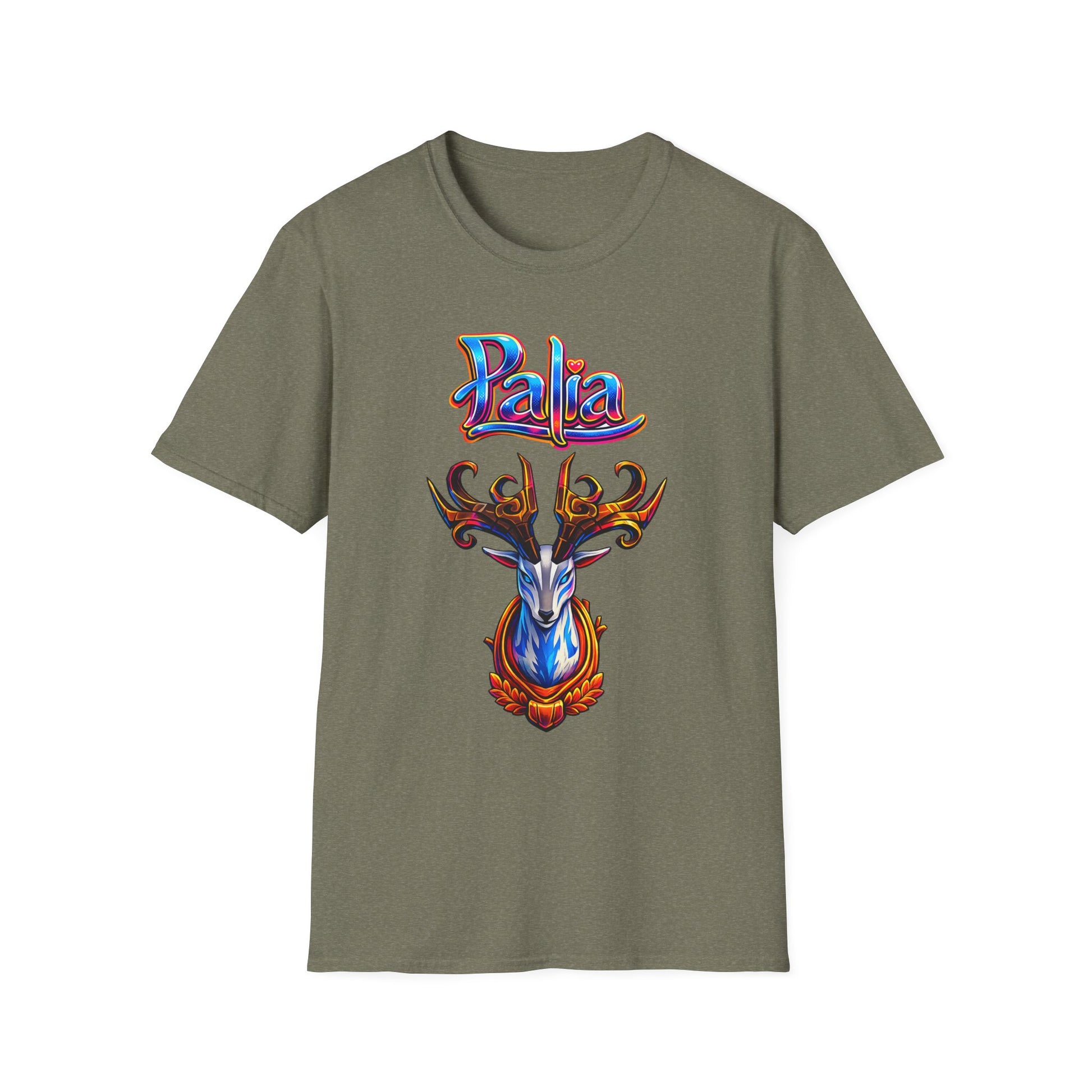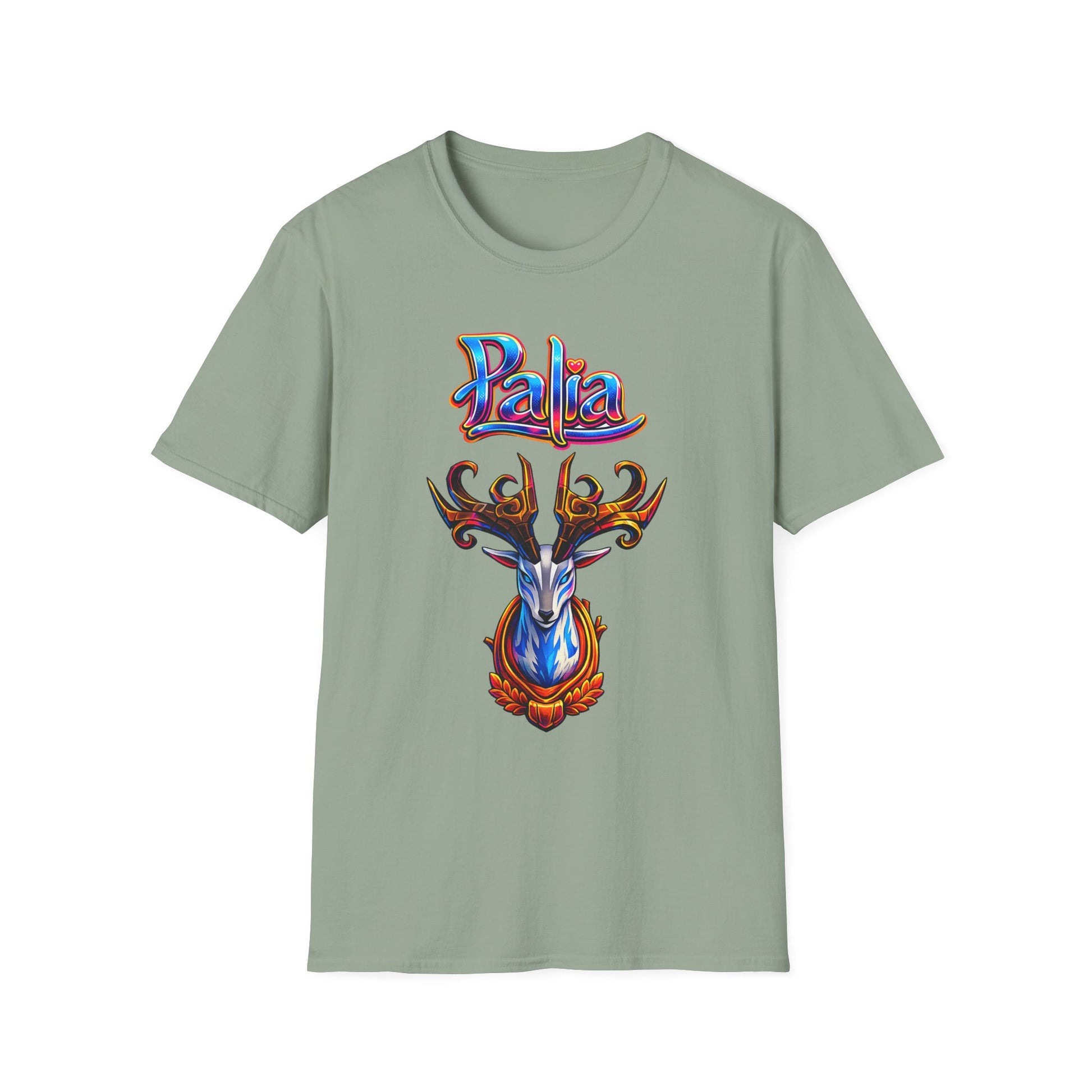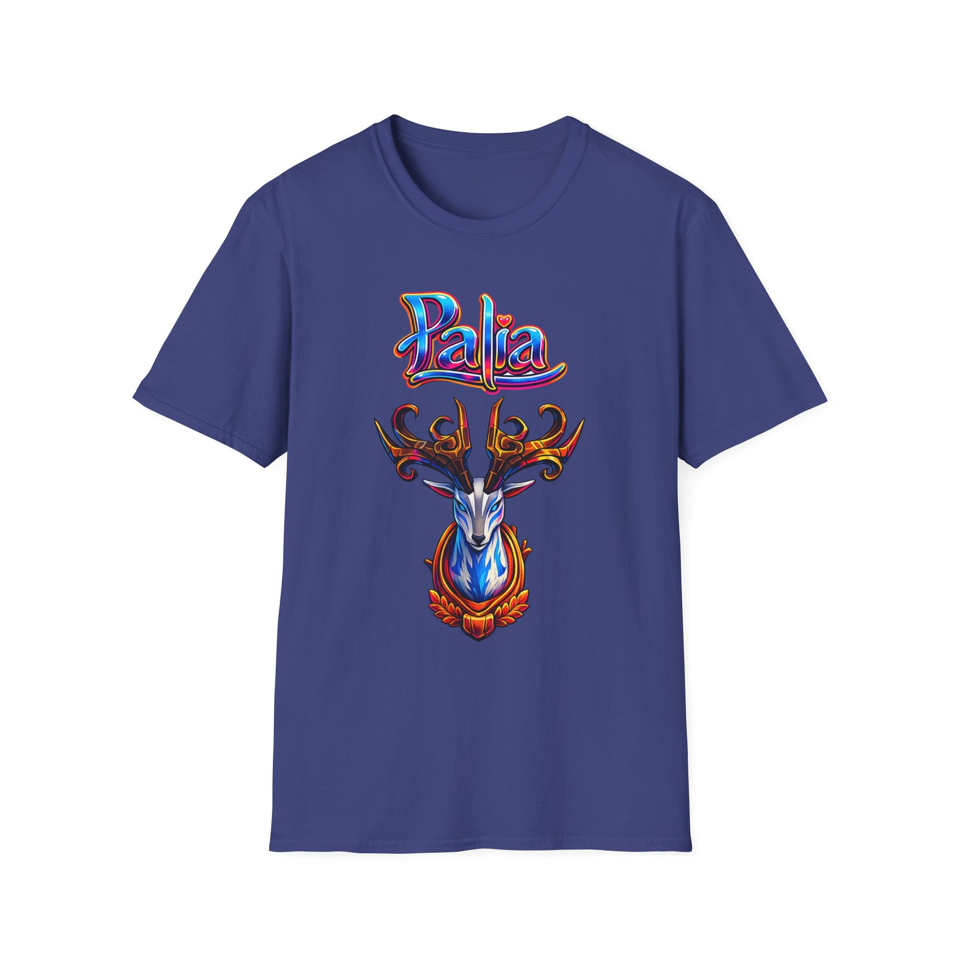 Palia Inspired Proudhorned Sernuk Trophy Graphic T-Shirt — 'Palia' Colorful Disco Deer Design
